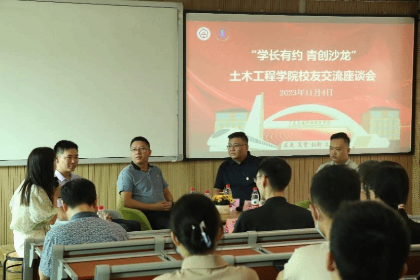 主题沙龙环节,主持人先介绍了四位优秀员工的基本情况,并就优秀员工的职业发展经历、对目前行业认知及对师弟师妹们的建议等方面展开了分享交流。2004届员工何惟煌就目前路桥行业的发展现状及未来发展趋势给大家做了一个分析,在此基础上,就职业选择与发展方向等方面给予了具体建议,并引导师弟师妹们在学习方面要有前瞻性及错位竞争的意识,要具备终身学习的能力。2006届员工张悦超结合个人在企事业单位及创业的经历进行了分享,指导师弟师妹们要走好职场第一步,提升个人在职场中的核心竞争力,同时建议要结合个人能力及时机择机创业。2012届员工沈钊荣分享了自己从一个默默无闻的大专生到获得“广东省技术能手”、“黄埔工匠”的奋斗及成功逆袭的经历,并分享了毕业11年来考取24个职业及行业资格证书的学习经验,告诉同学们学无止境,要以铺路石品格和航标灯精神开辟一条属于自己的人生发展道路。2015届员工巫峥分享了自己从迷茫到找到职场定位的过程,告诉师弟师妹们进入职场要有信心,对自己有一个明确的定位,要一步一个脚印踏实地朝着目标前进,是金子总会在对的地方发光。最后,在场的同学们与师兄们进行了一对一的互动答疑。