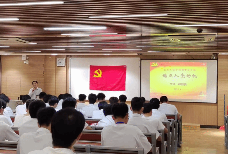 徐新贵同志以《端正入党动机》为题给党章学习班授课,详细讲授了什么是入党动机、中国共产党执政“重大成果”、如何树立正确的入党动机等内容。在授课中,徐新贵通过与学员互动交流,深刻阐释入党动机内涵,通过翔实的材料让学员们直观感受国家在政治经济等领域上取得的巨大成就,希望同学们进一步端正入党动机、树牢正确的价值观、增强服务和奉献意识,早日在思想上行动上入党。